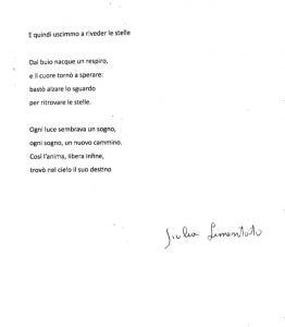 🏆👏👏🎯DIPLOMA DI MENZIONE, nella sezione scuole secondarie di I grado, per la poesia “E quindi uscimmo a riveder le stelle” dell’ alunna Giulia Limentato della 1^ F della G.Verga, condotta dal prof Giancarlo Palumbo, versi che seguono l’ incipit dantesco e che esprimono, in modo del tutto originale, sensibilità e ricerca dell’ anima, nel continuo ergersi tutto da vivere!